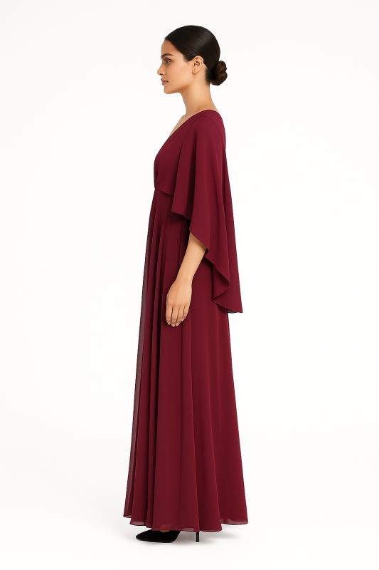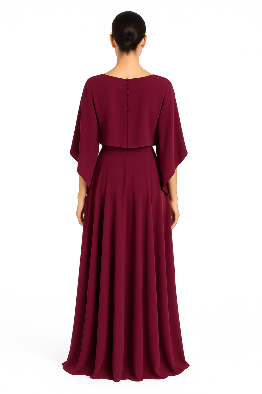 Crafted from luxurious polyester fabric, this gown is designed to offer both comfort and style. The rich purple color exudes confidence and allure, while the designer sleeves elevate its fashion-forward appeal. The combination of pleated details with a sleek, modern cut creates an eye-catching contrast, making it a must-have for your wardrobe. Whether you are attending a cocktail party, a formal dinner, or a glamorous celebration, this gown provides the perfect balance of elegance and modern flair.