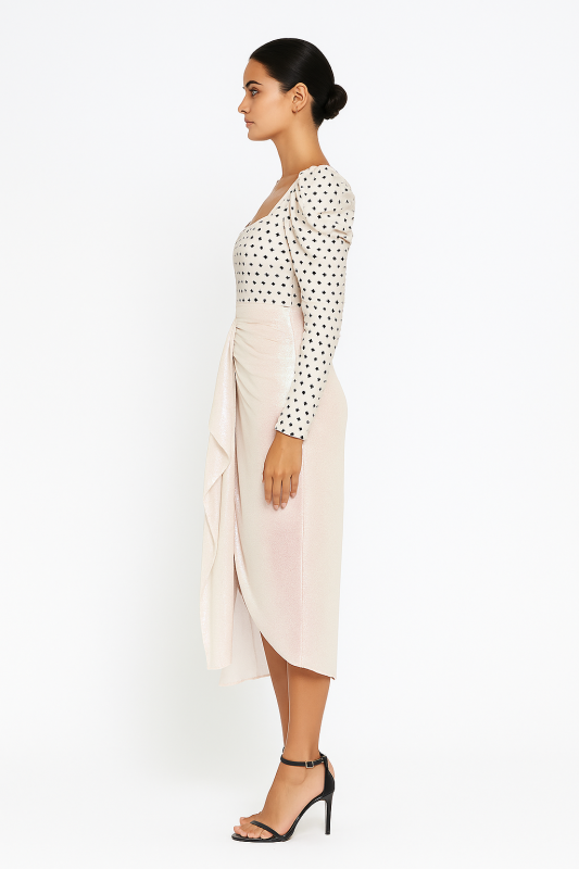 Crafted from premium materials, this gown is ideal for weddings, cocktail parties, and formal events. Its pristine white hue radiates purity and grace, complementing all skin tones. Pair it with minimalistic silver or diamond accessories to enhance its glamorous allure. Available for both rent and purchase, this gown allows you to shine without compromising on budget or quality. Step into the spotlight with this exquisite piece, perfect for those who love elegance with a modern twist.